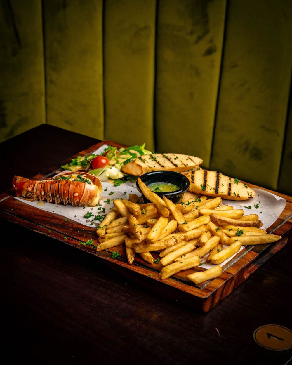 Luxurious lobster tail with garlic butter and your choice of side
